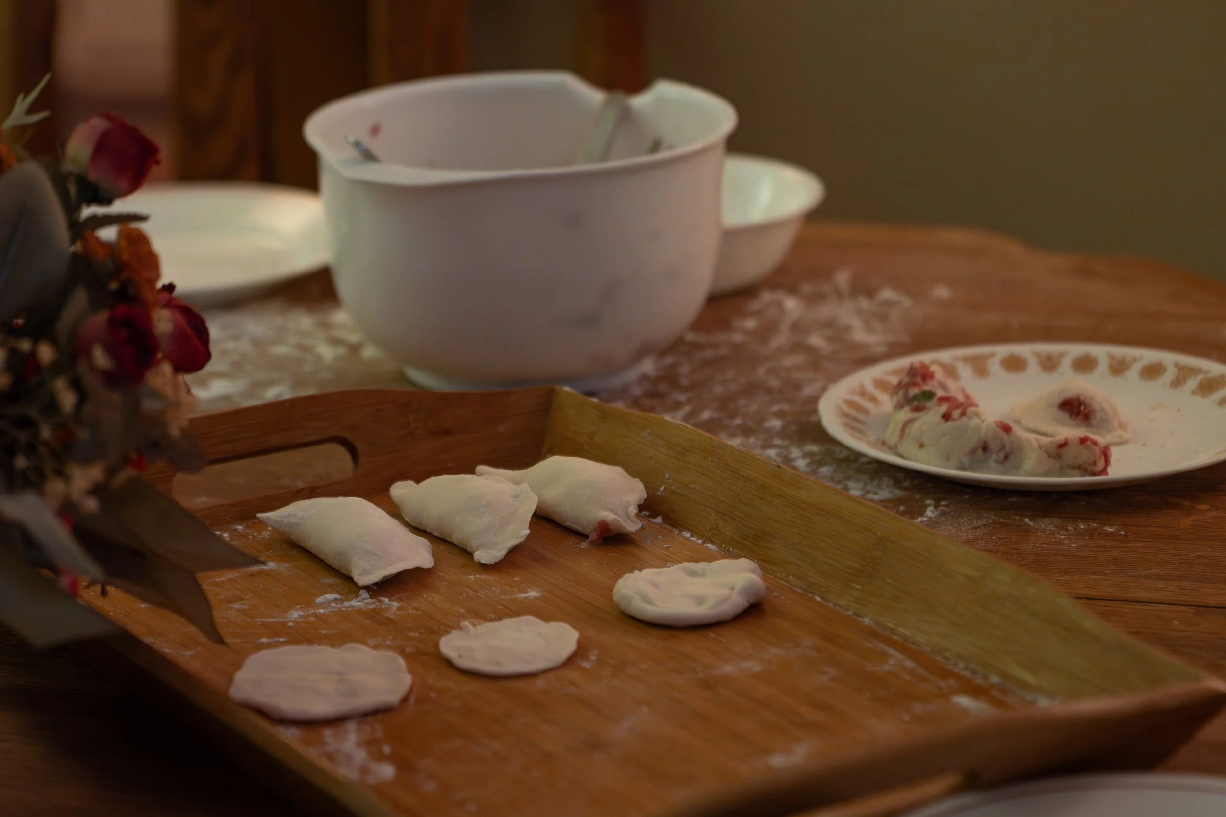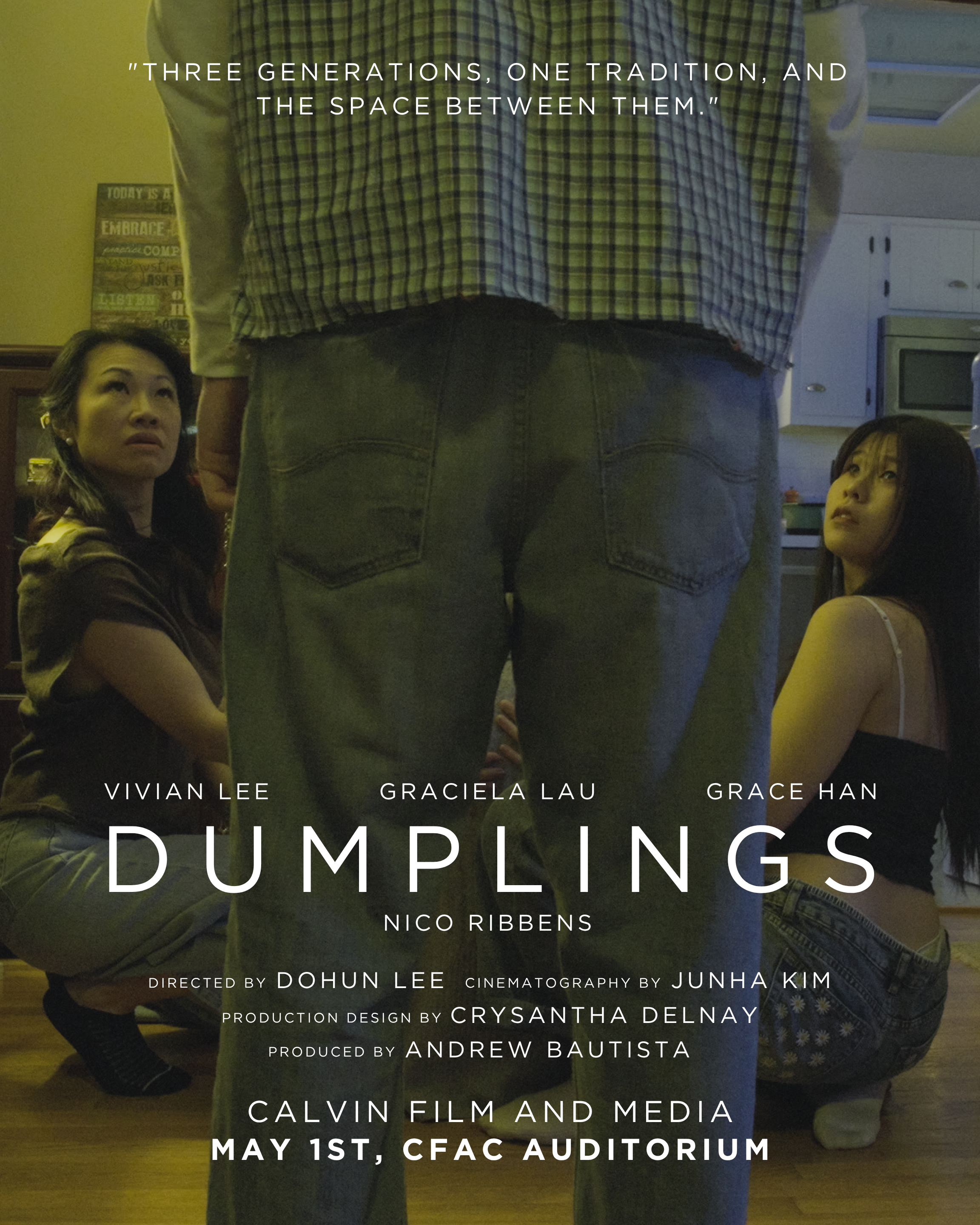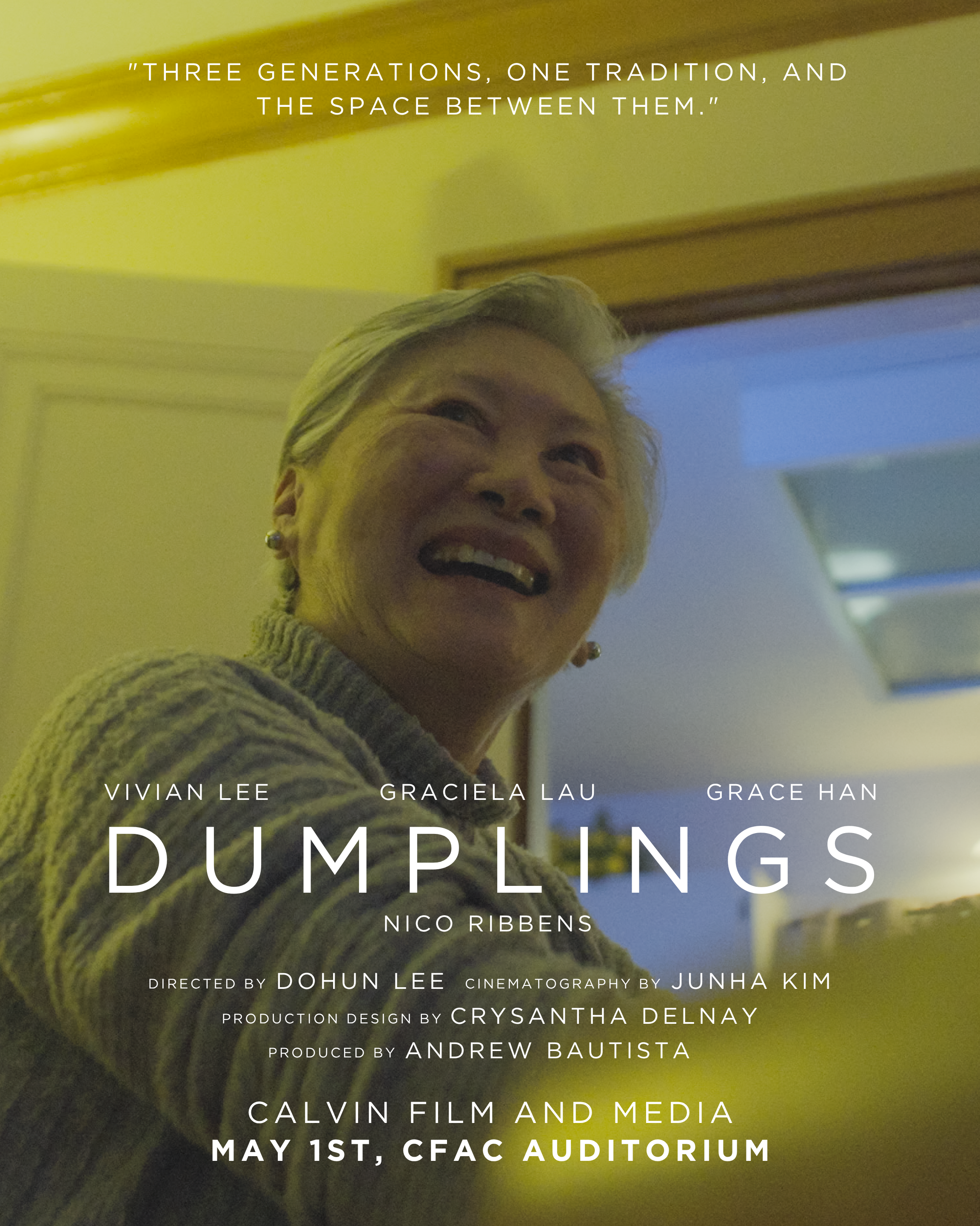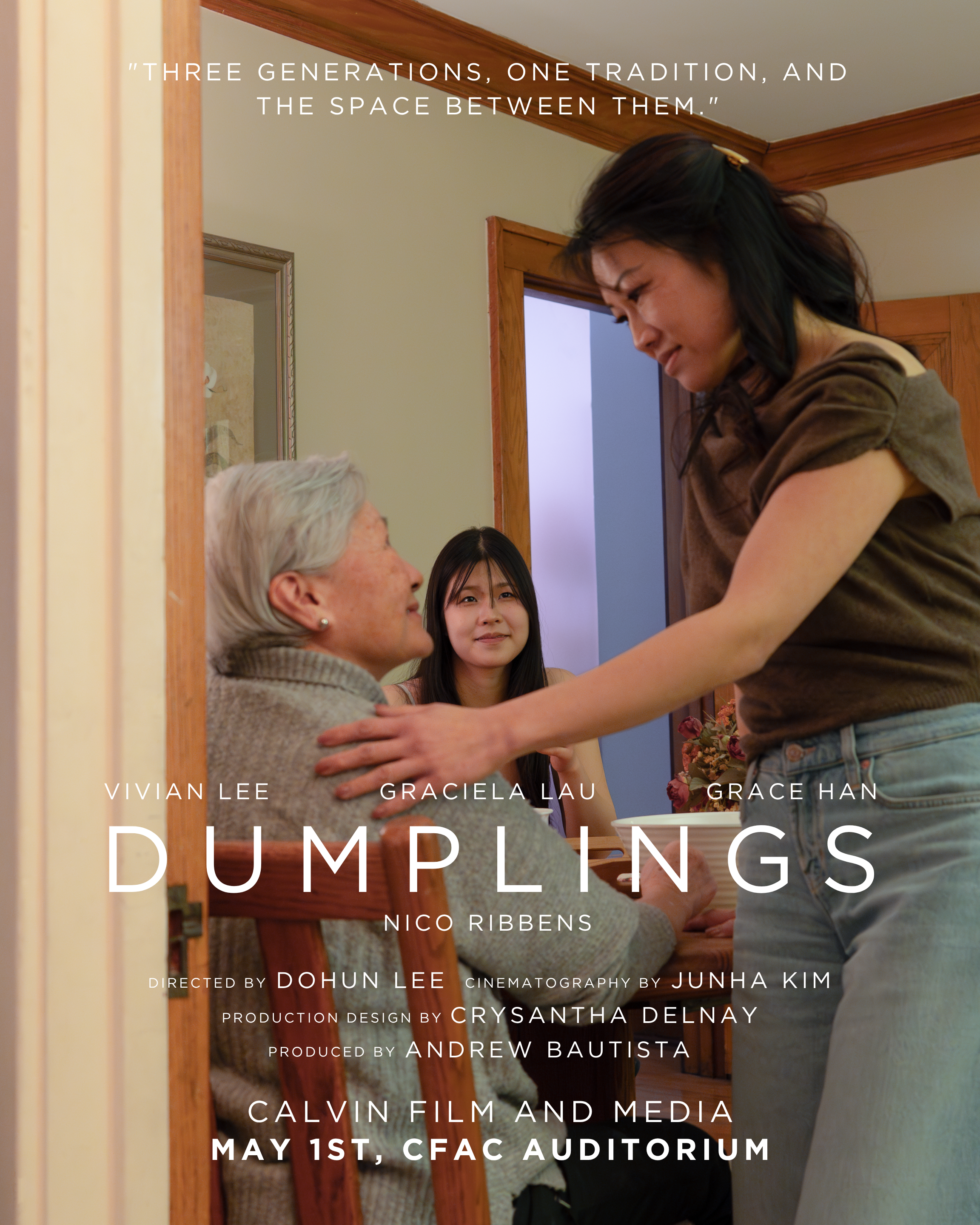This film would not have come together as smoothly without the dedication and hard work of our Production Assistants. We are deeply grateful for their time, energy, and commitment. We would also like to extend a special thank you to the McGregor family for generously allowing us to film in their home, providing a space that became essential to bringing Dumplings to life.